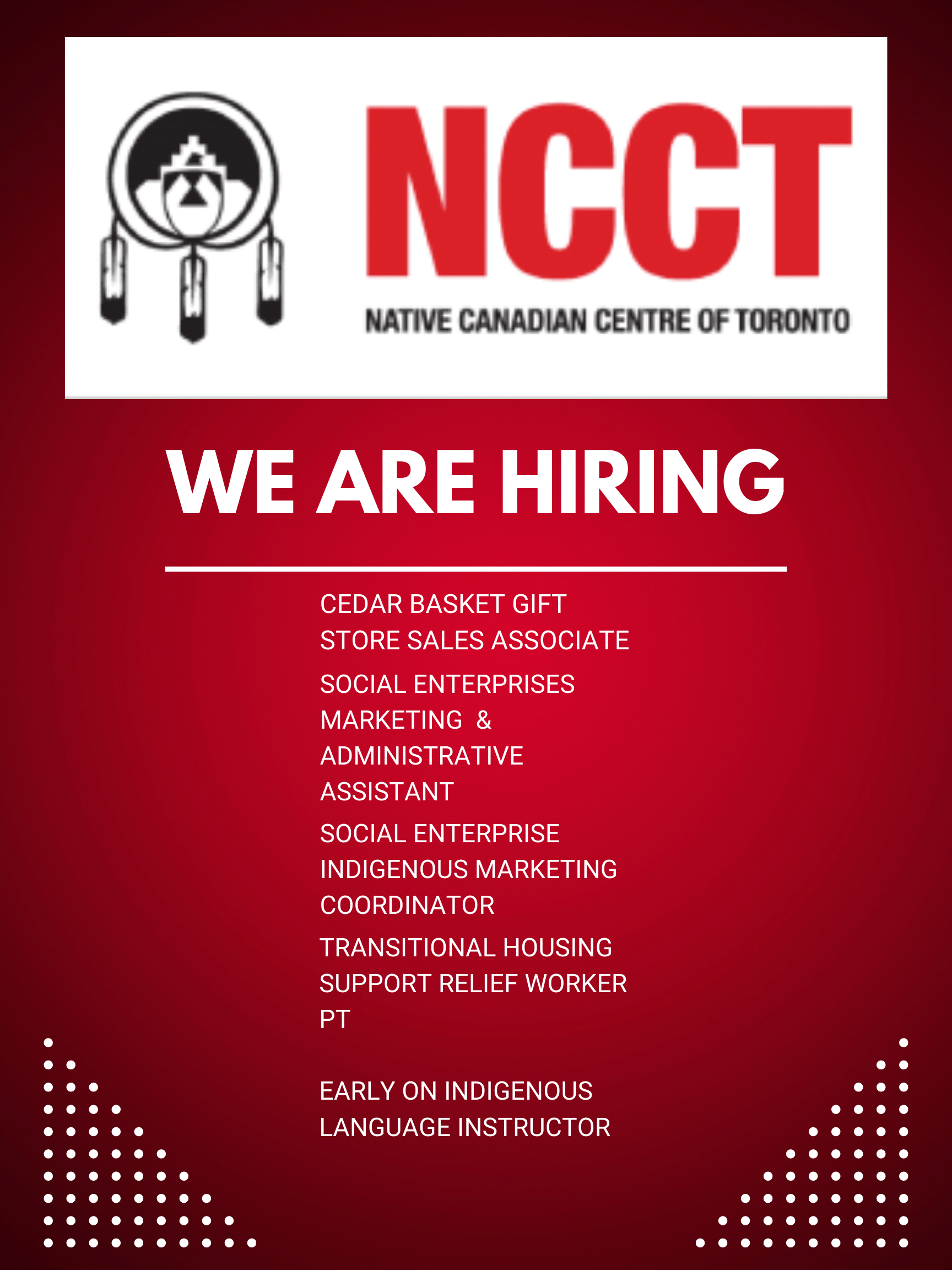 Nativecentreofto On Twitter Calling All Job Seekers We Are Hiring Please Visit Our Jobs Links At Https T Co Cxsceaoxl9 Jobs Hiring Nativecanadiancentreoftoronto Hiringnow Https T Co Yrljkz5fut Twitter